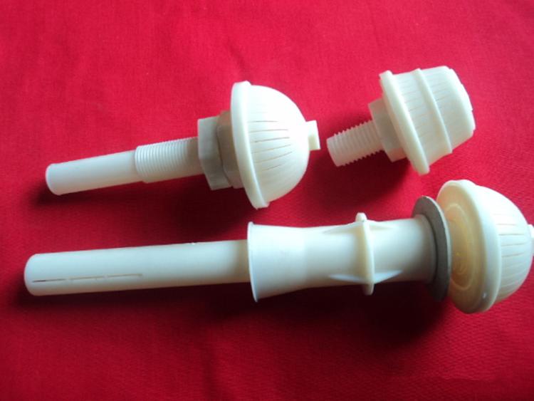 反冲洗滤头:滤头是滤池底部配水系统汽水反冲冼装置,它能有效地冲洗出滤池中的污泥杂物,保证滤池水质水量正常运行;滤头的种类有(长、短柄)磨菇型、梅花型、塔型和圆柱型,均采用ABS工程塑料制成,结构合理,连接牢固,承压强度高,缝隙不变型,能使滤板间无死水角区,不积泥,效果好。长柄滤头常用于滤池汽水反冲洗配水系统;短柄滤头应用于单水反冲洗和重力式,压力式滤罐及离子交换滤床等水处理设备的过滤装置。滤头滤帽用于城市饮用水,工业用水高级净化,滤头滤帽是高纯水,矿泉水生产中的高级净化材料,滤头滤帽有效脱除水中的COD,色素,臭气毒害物质。