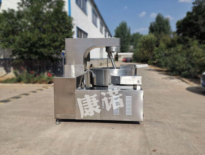 行星搅拌炒锅,锅体采用日本技术一次冲压成型,与普通锅体相比,平整度高,避免炒制糊锅。加热方式可采用蒸汽、液化气、天然气等加热形式,搅拌方式为特殊的倾斜式传动,确保行星式搅拌器与锅体充分接触,实现传动公转与自转的不整数传动比,使锅内无搅拌死角。先进的传动与密封结构,使传动部分与锅内洁净、卫生。采用变频调速动力,运行更平稳。另本机采用液压升降,翻锅运料,免拆装搅拌器,节省人力,降低劳动强度,是性能优良的食品加工设备。