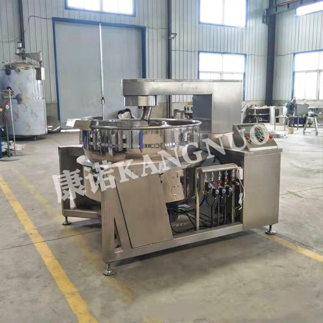 行星搅拌炒锅,锅体采用日本技术一次冲压成型,与普通锅体相比,平整度高,避免炒制糊锅。加热方式可采用蒸汽、液化气、天然气等加热形式,搅拌方式为特殊的倾斜式传动,确保行星式搅拌器与锅体充分接触,实现传动公转与自转的不整数传动比,使锅内无搅拌死角。先进的传动与密封结构,使传动部分与锅内洁净、卫生。采用变频调速动力,运行更平稳。另本机采用液压升降,翻锅运料,免拆装搅拌器,节省人力,降低劳动强度,是性能优良的食品加工设备。