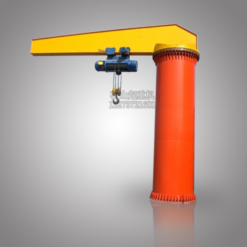 悬臂吊起重机工作强度为轻型,起重机由立柱,回转臂回转驱动装置及电动葫芦组成,立柱下端通过地脚螺栓固定在混凝土基础上,由摆线针轮减速装置来驱动悬臂回转,电动葫芦在悬臂工字钢上作左右直线运行,并起吊重物。起重机旋臂为空心型钢结构,自重轻,跨度大,起重量大,经济耐用。内置式行走机构,采用带滚动轴承的特种工程塑料走轮,摩擦力小,行走轻快;结构尺寸小,特别有利于提高吊钩行程