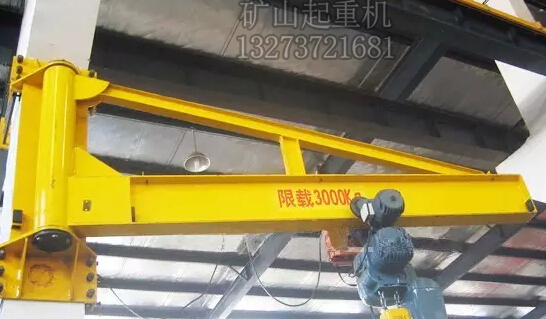 定柱式旋臂起重机由立柱装置、回转装置、旋臂装置及环链电动葫芦等组成,主要包括 上立柱、下立柱、主梁、主梁拉杆、起升机构(环链电动葫芦)、回转机构、电气系统、爬梯及检修平台。立柱下端固定于混泥土基础上,旋臂回转,可根据用户需求进行回转。回转部分分为手动回转和电动回转。环链电动葫芦安装在旋臂轨道上,用于起吊重物。