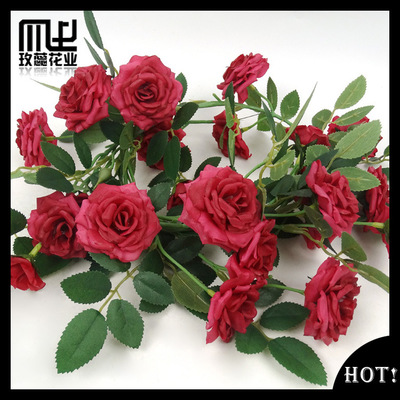 小月季藤条 高档装饰仿真藤条 绢布月季藤条 婚庆装饰仿真花