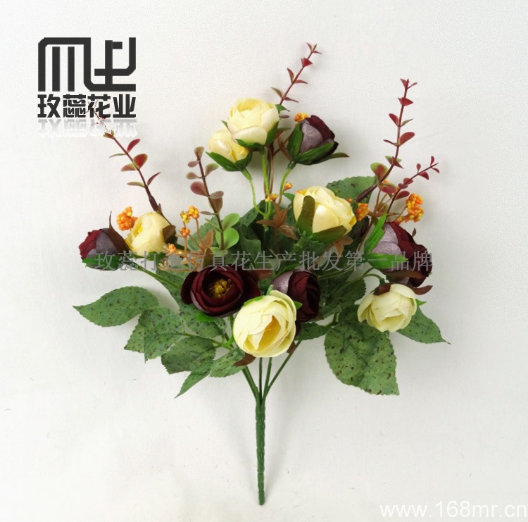 13头珠光蕾 厂家直销仿真小把束玫瑰花 家居装饰 仿真花批发