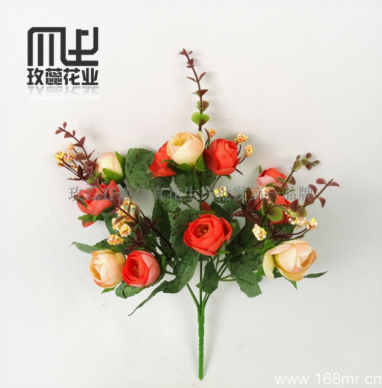 13头珠光蕾 厂家直销仿真小把束玫瑰花 家居装饰 仿真花批发