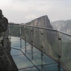 玻璃栈道是由钢化玻璃凌空高架在悬崖峭壁上形成旅游观光悬空透明玻璃栈道,玻璃栈道的钢化玻璃载重安全系数已经堪比传统的钢筋混泥土,游客再也不用担心安全问题,也是玻璃栈道商业化的基础。[1]