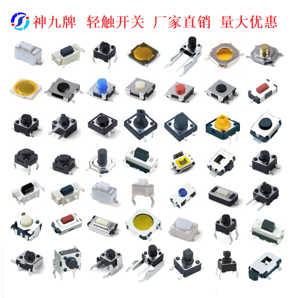 6×6×4.3插脚、贴片,6×6×5插脚,6×6×7插脚,6×6×8插脚,6×6×9插脚,6×6×12插脚。6.2×6.2×2.5、3.1、3.8红头/黑头贴片五脚、插脚。