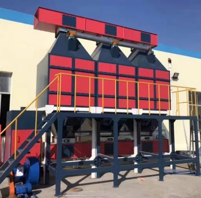 根据吸附和催化燃烧两个基本原理设计,采用双气路连续工作,一个催化燃烧室,2个或2个以上吸附床交替使用。先将有机废气用活性炭吸附,当快达到饱和时停止吸附,然后用热气流将有机物从活性炭上脱附下来使活性炭再生;脱附下来的有机物已被浓缩(浓度较原来提高几十倍)并送往催化燃烧室催化燃烧成二氧化碳及水蒸气排出。当有机废气的浓度达到2000PPm以上时,有机废气在催化床可维持自燃,不用外加热。燃烧后的尾气一部分排入大气,大部分被送往吸附床,用于活性炭再生。这样可满足燃烧和吸附所需的热能,达到节能的目的。再生后的可进入下次吸附;在脱附时,净化操作可用另一个吸附床进行,既适合于连续操作,也适合于间断操作。