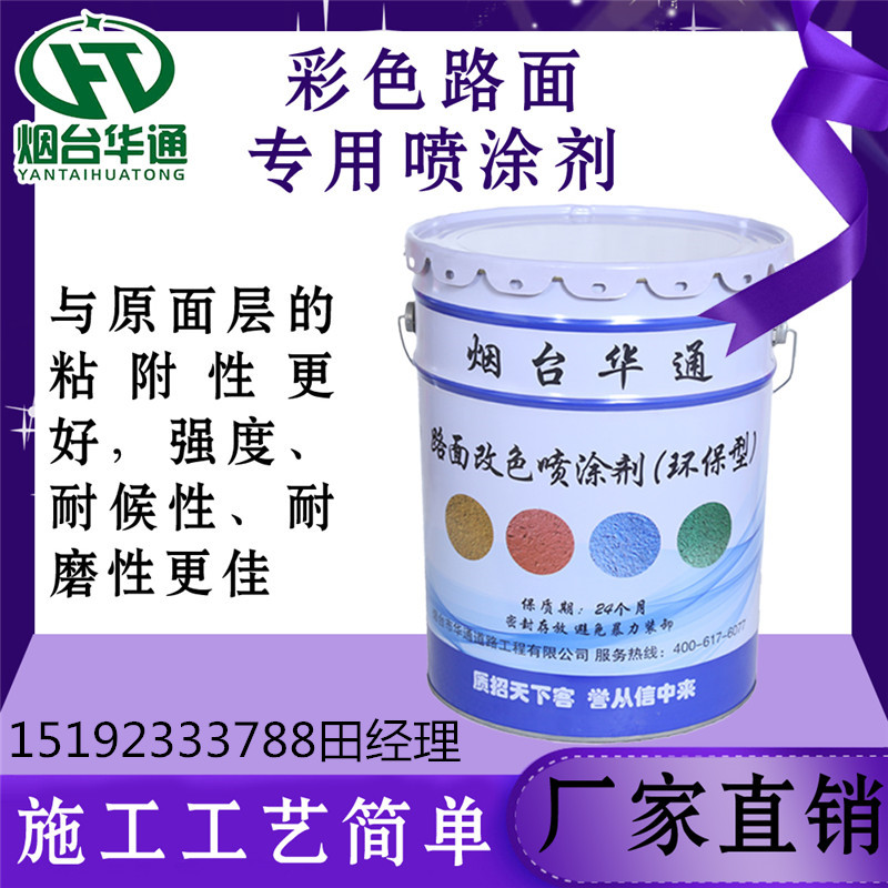 华通路面改色剂从原材料选材进行改进,采用聚氨酯复合材料为主要分成,增强材料的粘附力,喷涂后彩色封层与路面粘结力牢固,从而确保封层的耐久性。华通路面改色剂单组份油性材料,采用喷涂施工,可直接喷涂在沥青路面或者水泥路面,彩色薄层封层,在不改变原路况的基础上进行路面改色处理,一台喷涂剂zui多搭配3名工人即可在短时间内完成大面积地路面改色作业,相比彩色路面铺装不仅节省了施工时间,还节省了大量的人工成本,施工简单成本低,颜色呈现可更胜一筹。华通路面改色剂油性材料,区别水性材料不易粉尘起皮,同时还可有效抵抗紫外线的氧化作用,抗风化、老化性能优异耐久性好,只要路面不被破坏可长期保持良好色泽与美观。华通路面改色剂采用专用喷漆机或车辆喷漆设备喷涂,施工简单、方便,每公斤改色剂可喷涂2.2-2.5平方米,对于新修水泥路面或是沥青路面无需处理,可直接喷涂改色。