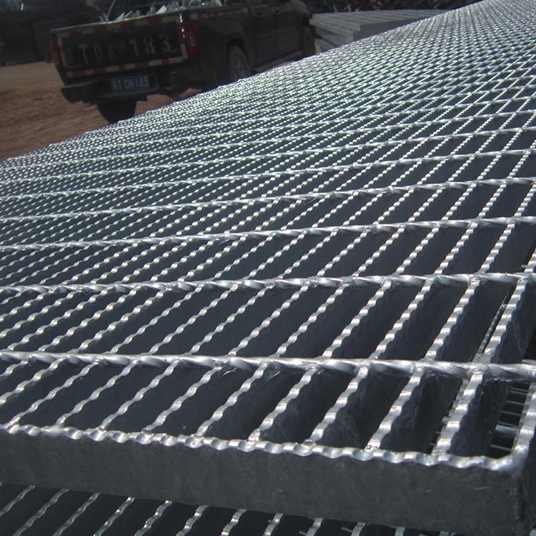 钢格板是用承载扁钢和横杆按照一定的间距进行正交组合,通过焊接或压锁加以固定的开敞式钢构件;横杆一般采用经过扭绞的方钢、也可采用圆钢或扁钢,材质分为碳钢和不锈钢。