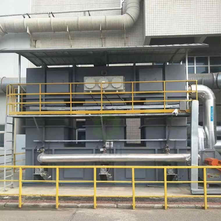 根据吸附和催化燃烧两个基本原理设计,采用双气路连续工作,一个催化燃烧室,2个或2个以上吸附床交替使用。先将有机废气用活性炭吸附,当快达到饱和时停止吸附,然后用热气流将有机物从活性炭上脱附下来使活性炭再生;燃烧后的尾气一部分排入大气,大部分被送往吸附床,用于活性炭再生。这样可满足燃烧和吸附所需的热能,达到节能的目的。再生后的可进入下次吸附;在脱附时,净化操作可用另一个吸附床进行,既适合于连续操作,也适合于间断操作。