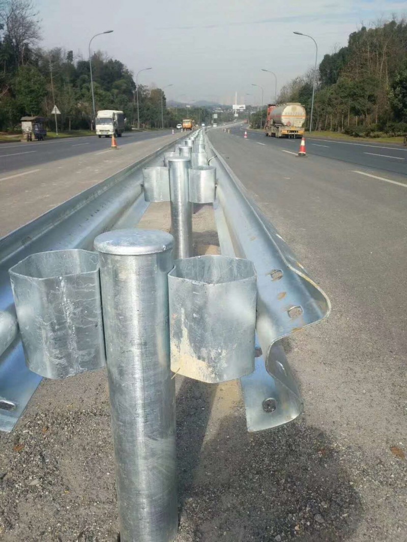 1、产品介绍:波形护栏为公路防撞设施,主要是为了防止失控车辆冲出道路,一般为镀锌钢板加工而成,根据公路等级不同而采用不同的规格。波形梁护栏是半钢性护栏的主要形式,它是一种以波纹状钢护栏板相互拼接并由主柱支撑的连续结构。它利用土基、立柱、横梁的变形来吸收碰撞能量,并迫使失控车辆改变方向,回复到正常的行驶方向,防止车辆冲出路外,以保护车辆和乘客,减少事故造成的损失。波形梁护栏刚柔相兼,具有较强的吸收碰撞能量和防撞的能力,具有较好的视线诱导功能,能与道路线形相协调,外形美观。协调,可在小半径弯道上使用,损坏处容易更换。组合波形梁护栏可在窄中央分隔带上使用。对于车辆越出路(桥)外,有可能造成严重后果的区段,可选择加强波形梁护栏。波形护栏实用新型涉及一种公路中央分隔带开口处用组合型波形板活动式钢护栏,该护栏由两片波形钢护栏板及两者之间固定夹放的两根立柱构成,两根立柱固定夹装在两片波形钢护栏板之间。在公路正常营运时,该护栏利用插拔立柱可方便地插入开口处预先设置的插拔孔内,起到隔离和防护作用,同时与公路外边上的护栏带相呼应,整齐划一,美观配套。车辆对其碰撞时,由于波形钢护栏板有良好的耐撞性能和吸收能量的作用,既不容易被撞毁,同时又可对车辆和司乘人员起到很好的保护作用。当路面维修或其它原因需要并通时,可方便地把开口处的各组护栏立柱拔出移走,开辟通道,便于车辆通行。