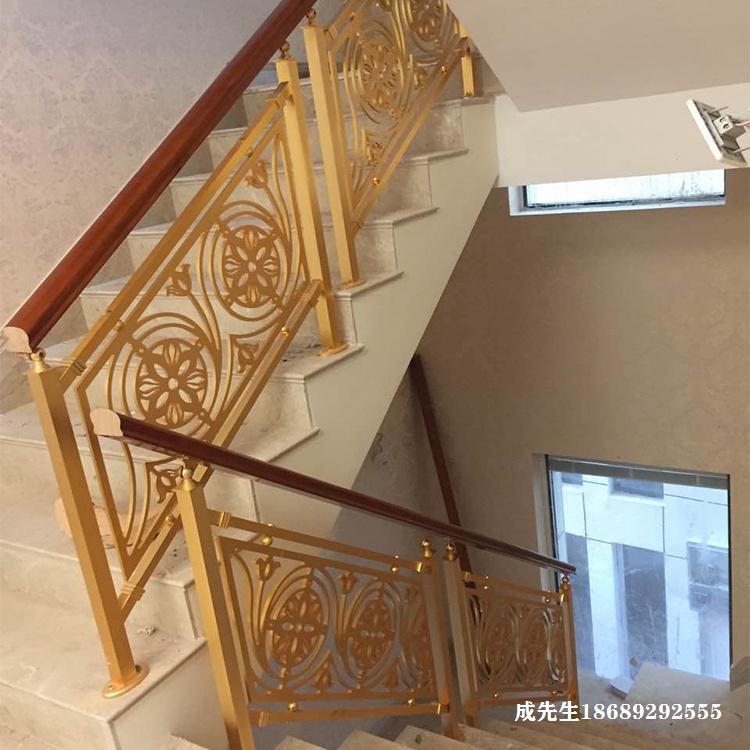 组装别墅铝艺楼梯 铝雕刻护栏上门安装铝艺护栏产品的特点就是每年不需要花人力物力进行表面维护,身处潮湿、酸碱盐含量高的空气中不会生锈。铝艺防护产品的使用年限在15年到20年左右,而普通的阳台隐形网使用不到5年,就会出现生锈,脱落的现象,因此,对于业主装修来说,选择新的装修材料,可以避免返工带来的麻烦。