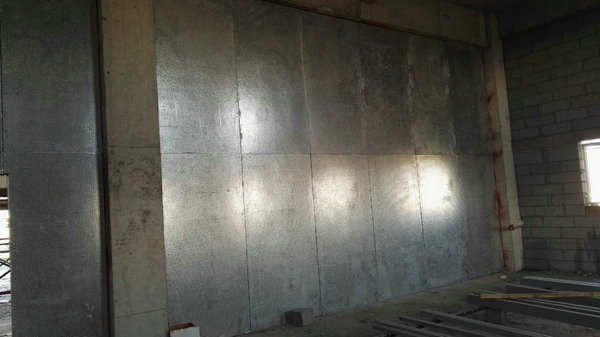 5.安装内侧单面:1200×2400×10mm泄爆板,板采用自攻丝固定于龙骨上,固定间距200mm,在板与每一个龙骨相接的地方都要固定