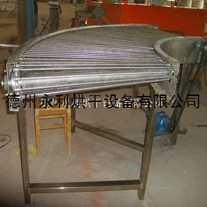 该机是饼干经过烘焙后冷却输送过渡机。是为厂房长度受限制而设计的一种输送机。该机分为90度、180度转弯,采用变频调速,能保持饼干平稳运行。不沾油污,方便整理包装