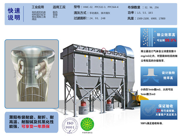 萧阳环保选型生产的化工厂除尘器采用分室脉冲清灰技术,性能稳定,操作方便稳定,性比较高,滤袋寿命长,耐磨、耐折、耐高温及抗氧化性能强,还可享受一年质保。萧阳环保成立2004年,深耕布袋除尘器,锅炉除尘器,滤筒除尘器,不锈钢喷淋塔等粉尘、废气净化领域20余年。萧阳环保不是简单卖一台设备给客户,而是系统的帮客户“提供完整的粉尘、烟雾净化解决方案!”