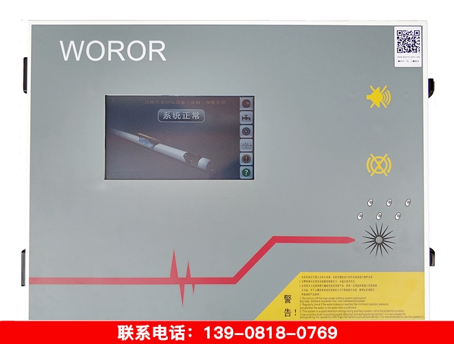 标配10寸大屏,可显示系统工作状态、火花报警数量、时间、处理结果,以及多达上百种故障检测内容(例如探头在线、断线、接触不良、数量检测、水压检测、喷头在线检测、水流动、电磁阀开闭检测等等),有效避免发生火花报警时才发现设备无法使用造成的损失。标配德国魏德米勒UPS后备电源,即使断电也能正常工作。
