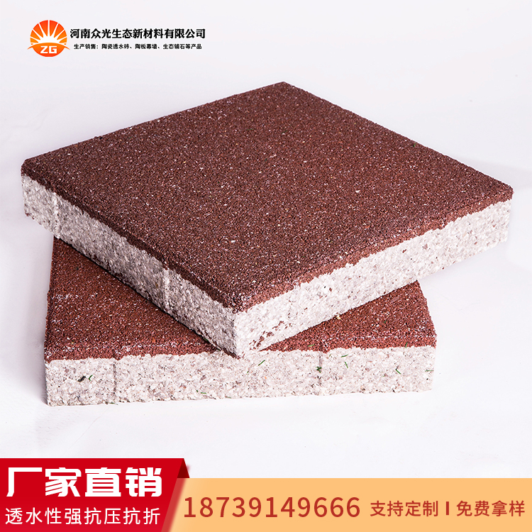 不同规格、不同尺寸、不同厚度的陶瓷透水砖,其价格也不相同。一般来说,规格越大、厚度越厚,透水砖的价格相对就越贵。当然,定制陶瓷透水砖的价格一般比默认规格的陶瓷透水砖贵,特别是在某些特殊规格和厚度方面。