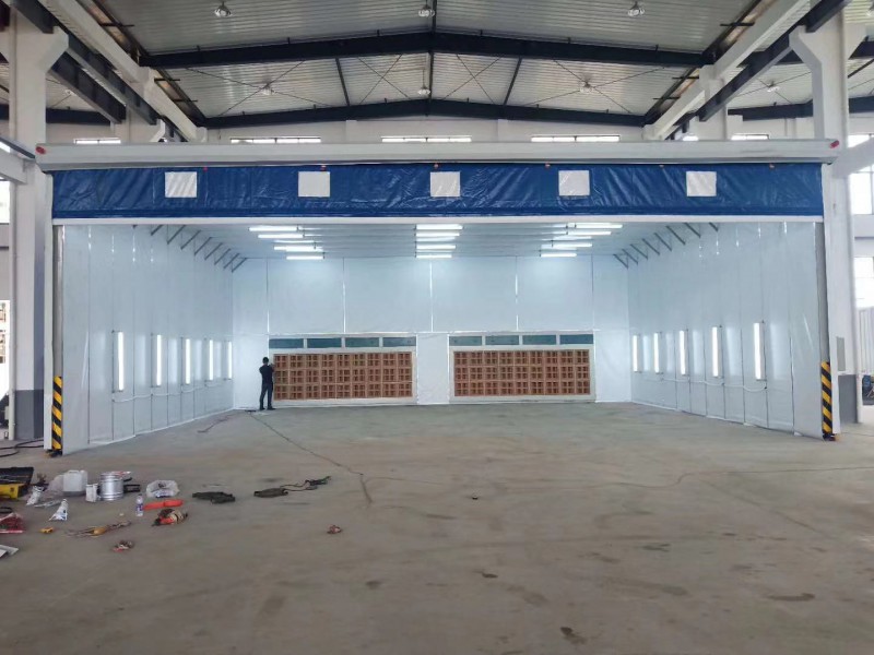 伸缩移动式喷漆房是我公司的主导产品,它适用于各种大中型设备及零部件的打磨,喷漆及烘干作业。展开前室,形成一个封闭或半封闭空间,在伸缩移动式喷漆房中进行喷漆或打磨作业,收缩前室后形成一个敞开式空间,方便进行工件转运及翻转工作,降低了工人劳动强度和工作效率。喷漆房整体为框架式结构,表面喷塑,框架之间由阻燃PVC布链接密封,颜色内白外兰,外形美观大方,安装快捷方便,价格低廉,运行平稳安全可靠。前室可伸展3-60米不等,宽度可做成2-25米不等,它净化效率高漆雾处理和打磨粉尘处理,提高工人喷漆工作环境质量,深受广大客户好评和亲睐,山东新迈环保24小时在线服务13406160918