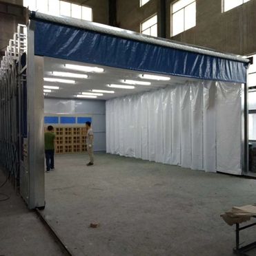 伸缩移动式喷漆房是我公司的主导产品,它适用于各种大中型设备及零部件的打磨,喷漆及烘干作业。展开前室,形成一个封闭或半封闭空间,在伸缩移动式喷漆房中进行喷漆或打磨作业,收缩前室后形成一个敞开式空间,方便进行工件转运及翻转工作,地降低了工人劳动强度和工作效率。喷漆房整体为框架式结构,表面喷塑,框架之间由阻燃PVC布链接密封,颜色内白外兰,外形美观大方,安装快捷方便,价格低廉,运行平稳安全可靠。前室可伸展3-60米不等,宽度可做成2-25米不等,它净化效率高漆雾处理和打磨粉尘处理率均能达到标准排放,大大地提高了工人喷漆工作环境质量,山东新迈环保24小时在线服务13406160918