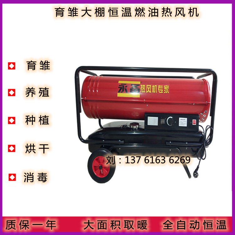 燃油热风机主要应用于大型厂房供暖、工厂车间取暖、养殖育雏加温、工业厂房采暖、农业大棚加温等,由于燃油热风机移动方便,升温迅速,热风温度稳定,不会出现忽冷忽热现象,机器自带恒温功能,当温度到达设置温度之后即停止耗油,低于设置温度2度后重新自动开启工作,取暖加温方便快捷,即买即用,无需任何安装,加油方可使用。给厂房车间带来了不可替代的便利,是冬季取暖加温的不二选择,相信燃油热风机将会为更多的厂房车间所使用,我公司出售的燃油热风机和其他同行业的产品相比较,油耗更低,质量更稳定,售后更有保障,我们的产品整机质保1年,有任何的产品技术问题,我们一定尽全力的为您解答,保证知无不言,言无不尽。燃油热风机现面向全国诚招代理商,希望有意者联系上海青沃实业有限公司,我们真心的希望可以与您合作。