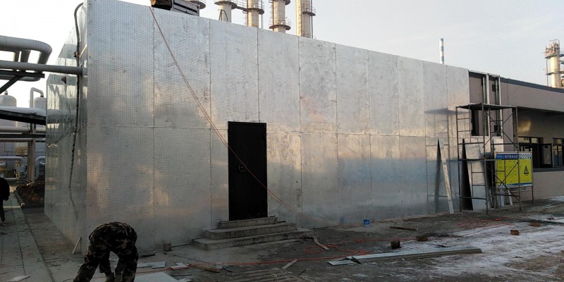 2、防爆泄压板外墙施工要点:选用轻钢结构1220*2440*9mm板+100mm轻钢龙骨+1220*2440*9mm板(龙骨内填充保温材料)如果墙高大于4米,需要加入钢结构。