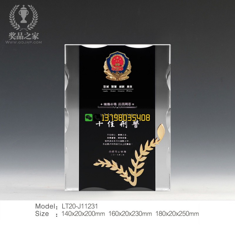 十佳刑警奖杯 市公安局表彰大会奖杯制作 警察退休纪念牌荣誉牌产品说明: