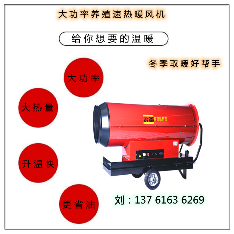 在寒冷的冬天,人们都想着能过的暖暖和和,舒舒服服的。不只是我们人类,就连那些在冬天生长在大棚中的果蔬,还有在养殖圈中的动物们等等它们都需要温。这样就会用到在冬天大家都非常认可的燃油热风机。不占用建筑面积。操作简单移动方便,移动方便。暖风机加油时要注意油箱卫生,防止尘土进入油箱内。周围不得放易燃,易爆物品。拔掉电源,关掉暖风机天关。暖风机加油时要使用的油箱。暖风机加油是不要加的过满。一定要用正规的柴油。冬季要使用合理标号的柴油,防止出现结晶。加完后,注意把油箱外溢出的油擦干净。