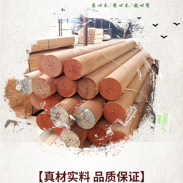 菠萝格圆柱实木防腐木立柱古建横梁户外凉亭寺庙圆木廊架柱子