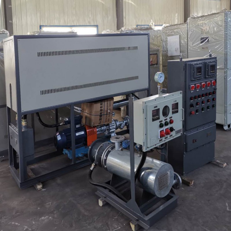 导热油油加热器又叫导热油电加热器、油加热控温机、导热油温度控制器、热油温控设备,为大型热油温控设备,能在较低的运行压力下将导热油温度加热到350摄氏度,泵浦流量大,加热功率高。