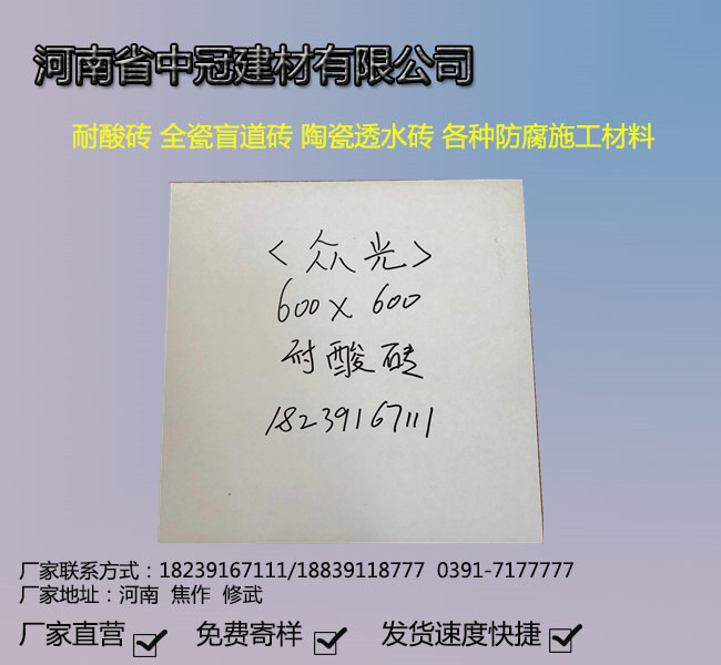 要注意耐酸瓷砖是否需要拼花或是按统一方向铺贴,切割地砖一定要准确,门套、柜底边等处的交接一定要严密,缝隙要均匀。耐酸瓷砖铺贴前要浸水晾干后达到外干内湿,表面无水迹,选色时使用。贴之前要在横竖方向拉个十字线,贴的时候横竖必须保证贯通,不得错缝。勾缝在完工前进行,先清缝,用白水泥加滑石粉调腻子,勾缝腻子低于砖面1㎜。严禁无排水或无积水设备时用水,特别防止浸湿保护地砖用的纸板,以防间接污染耐酸瓷砖。