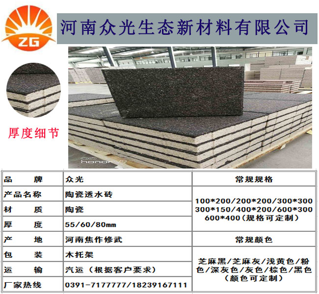 陶瓷透水砖具有以下特点:(1)透水性:陶瓷透水砖能使雨水快速渗入地下,补充地下水,降低地面沉降的危害,每平米陶瓷透水砖路面能快速渗水60Kg/min;(2)经济性:陶瓷透水砖可使雨水渗入土壤,降低城市排水和污水处理费用;(3)惬意性:陶瓷透水砖摩擦系数高,即使是雨天,路面也少有积水,保证行人出行安全;(4)环境性:陶瓷透水砖可以吸收噪声污染,同时砖体蓄存的雨水经蒸发吸热可缓解城市热岛效应。