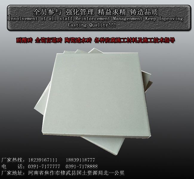 河南众光耐酸瓷业专业生产各种规格的防腐耐酸砖、全瓷盲道砖、陶瓷透水砖、压延微晶板、kp1耐酸胶泥、环氧树脂胶泥、呋喃树脂胶泥以及陶瓷透水砖等产品的生产厂家