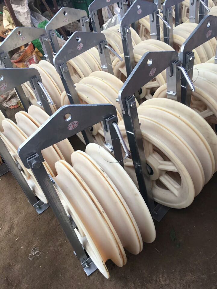 电力放线滑车简称放线滑轮,其作用是在高空中导线施工时通过滑轮完成顺利输送作用,加固放线滑轮生产厂家及规格,其材质为尼龙轮加铁架,一般两用型滑轮,上方有钩子可以挂式使用,下方有螺栓可以固定使用。参数:主要由铁架或者槽钢架和尼龙轮子两部分组合而成。由于放线的工程种类不同,放线滑轮也分为空中和地面型号,还有座挂两用和钩子式两种。再加工上,铁架的质量必须过关,才能保证长期放线中不会毁坏而导致工程延误。每一个大小规格的轮子都必须经过半年以上的使用才算合格达标。