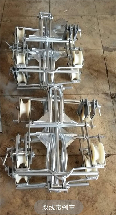 高空作业工具,放线飞车图片报价 电力双线飞车厂家,特点:由加固金属架和强尼龙滑轮组装成型,具有体积小,易于携带,耐用坚固等特点,根据规格分为单线和双线等等种类,可适用于不同线路工程作业中,小轮属于好尼龙滑车,基材比较好,在使用的过程中产生的热量比较小,可有效保护导线,一般可用5年以上年限,另外,工具配置刹车,可更有效方便的完成作业,较少不必要的麻烦事项。