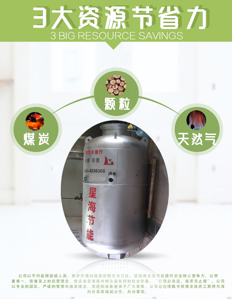 冷凝型燃气(油)锅炉节能换热器安装于锅炉或其他燃烧设备尾部烟道中,利用排烟冲刷高效换热管,加热在管中强制循环流动的软水,使其从常温(20℃)升高至60℃-90℃再进入锅炉,锅炉热效率提高8℃-13℃,达到降低燃烧消耗之目的。经过热交换的锅炉排烟温度将下降80-150℃,当烟温降至露点时,出现冷凝现象,生成冷凝水,燃烧过程中产生的氮氧化物、二氧化硫等大部分污染物则溶解沉积,随同冷凝水由换热器专设排水口排出。排出的冷凝水经中和处理后,可作为中水回收利用。