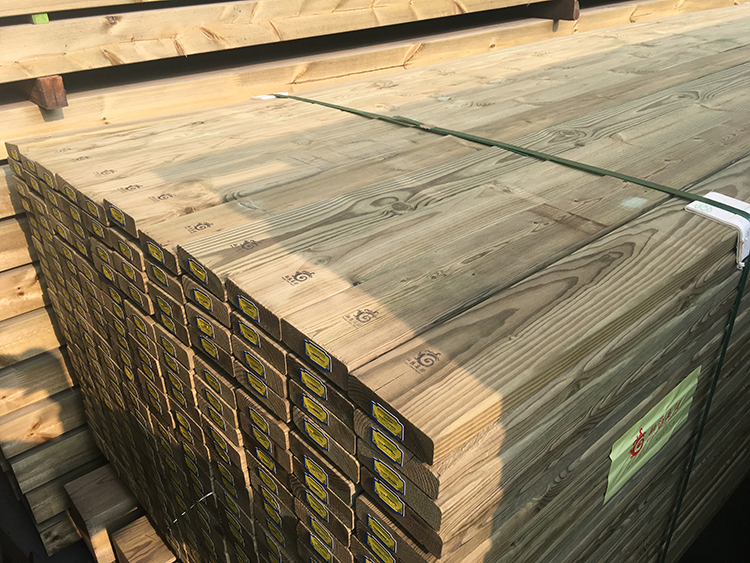 芬兰木属于经人工防腐木材,经加压灌注ACQ防腐剂处理和KDAT(二次窑干)的户外防腐木。芬兰防腐材是经真空脱脂后,在密闭的高压仓中灌注水溶性防腐剂ACQ,使防腐剂浸入木材的深层细胞从而使木材具有抗真菌、防腐烂、防白蚁和其他寄生虫的功能,且密度高、强度高、握钉力好、纹理清晰及具装饰效果。