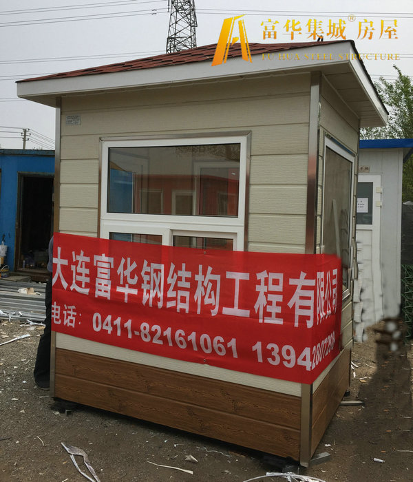 大连富华钢结构工程有限公司,专业设计制作:轻钢建筑、集成房屋、装配式房屋、钢木别墅、集城别墅、装配式别墅、景观房屋、木结构、六角亭子、木质房屋、成品活动房、岗亭、彩钢岗亭、保安岗亭、不锈钢岗亭、收费岗亭、小区岗亭、活动岗亭、移动打包厕所、环保免水厕所、成品发泡厕所、防臭景区厕所、公共厕所、售货亭、售卖亭、公话亭、报刊亭、书报亭、邮亭、集装箱活动房、收费亭、景点豪华亭、移动卫生间、集装箱活动房、集装箱房屋、钢结构厂房、库房、钢结构工程等项目。以“安全、优质、高效”的经营理念,坚持“敬业、团结、创新”的企业精神,遵循以“质量求生存,信誉求发展”的企业宗旨,锐意进取,采用手工艺,生产美观大方的“隔热、轻质、时尚”的整体装配式一体化成品房,实用于野外作业,建筑工地,社区物管,旅游景点等。