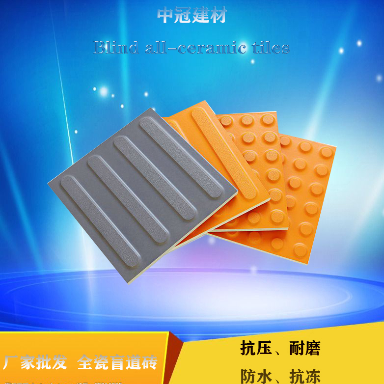 全瓷盲道砖广泛应用于:高铁、地铁、车站、码头、残联、市政等室外项目。中冠盲道砖***广大客户采用并高度***。具有美观典雅、防火抗*、耐磨防腐、便于清洁等优点。