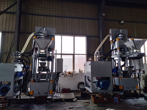 2、设备采用双向浮动加压,使舔砖的上下密度保持一致,有效的保证了舔砖的高密度及密度的一致性,舔砖的孔采用抽芯缸,保证了孔的边缘几何尺寸非常完美,从而使得舔砖的外观尺寸比同类产品高一个档次。