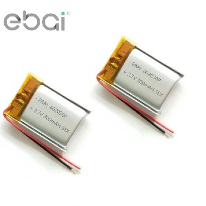 型号: 602030容量: 300mAh标称电压: 3.7V重量: 6g充电最大电压:4.2V标准充电电流:150mA 放电最低电压:2.75V标准放电电流:150mA最大充电电流:300mA最大放电电流:300mA工作温度:-20℃~60℃充电温度:0℃~45℃循环寿命:300次 大于80%可通过认证:UN38.3 ROHS MSDS CE