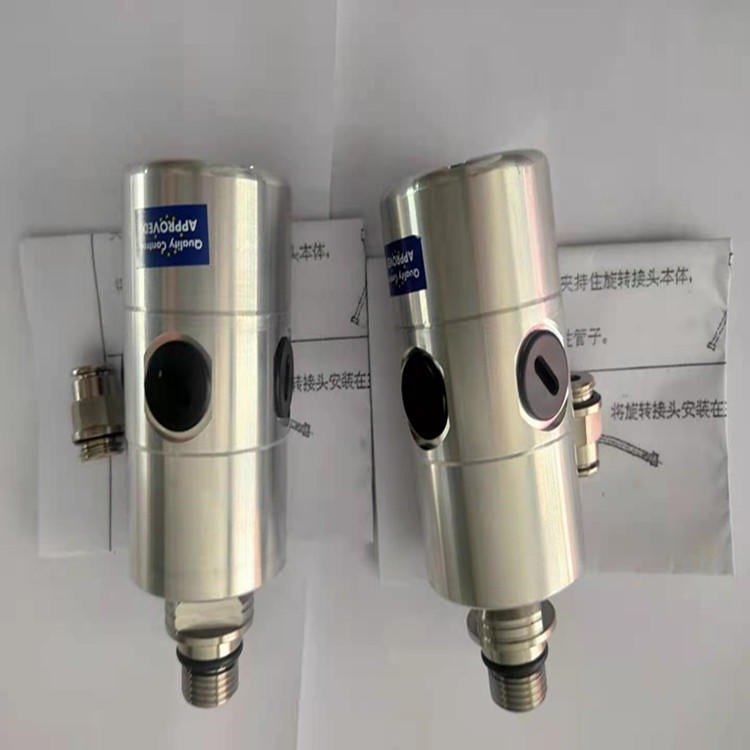 安装说明:1、用台钳夹紧后进行安装软管。2、将旋转接头安装到轴上。3、软管连接到固定供给管。4不能采用外部加固的来防止旋接接头外壳的旋转。5为了使壳体外口与用户设备能很好的连接,采用缺口式软管安装或者加装适配器