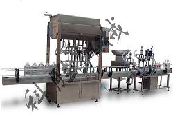旋转式灌装机 + 送瓶输送带 + TRJ-901CR立式贴标机 + X004自动旋盖机 + 送瓶机