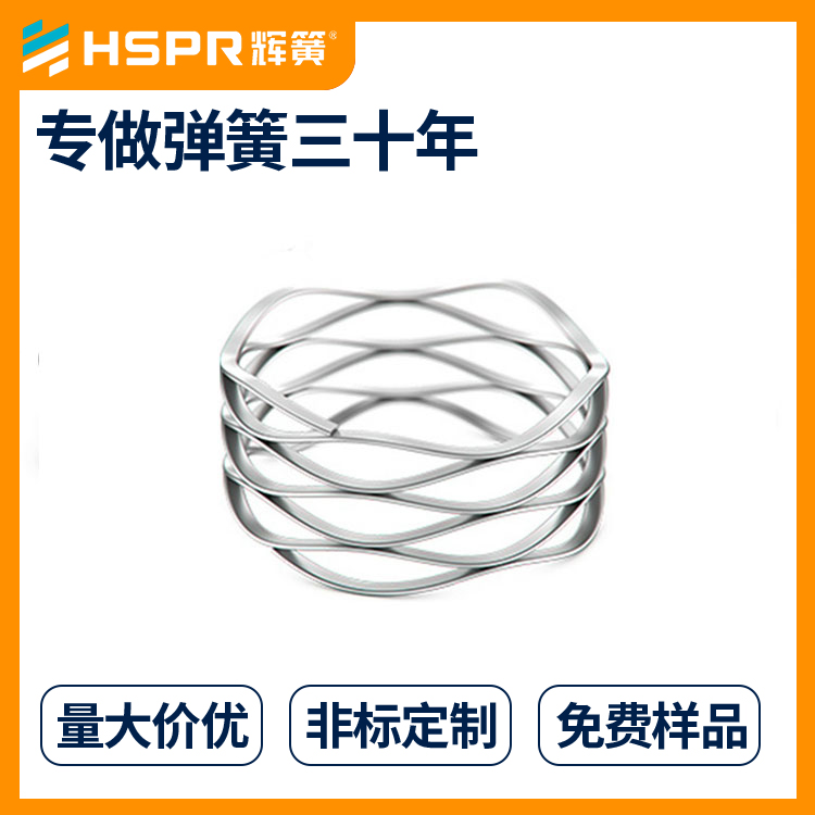 波形弹簧简称波簧,是金属薄圆环上具有若干峰谷的弹性元件。应用于载荷和变形量都不大,要求弹簧刚度小需施加轴向预压力的场合。
