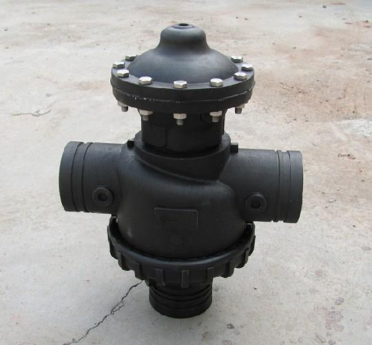 待处理水由进水管进入两位三通阀,经阀门控制,水流进入各个单元过滤。过滤后的水从过滤单元内部通道流入出水口。随过滤的进行,过滤器吸附的杂质增多,当压力差达到设定值或设定时间时,系统进入反冲洗模式。控制器首先发信号给第一个过滤单元对应的三通阀,该阀将改变水流的方向,关闭进水导通排污口。反冲洗水在压力作用下经出水管冲入过滤器进行洗涤,污水由排污口派出。洗涤完毕该单元恢复过滤模式,系统对下一单元进行反冲洗,直到所有单元冲洗完毕系统恢复过滤模式。根据出水管压力情况,在压力不足以支持反冲洗的情况下,将在出水管安装电动磁阀控制水流量以满足冲洗要求。(如图1,图2)