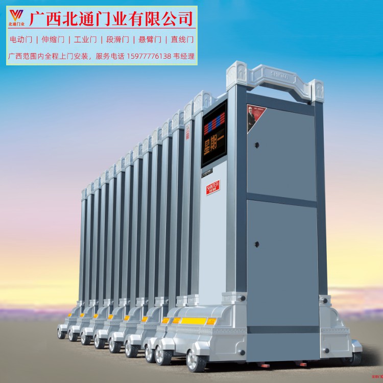 广西北通门业有限公司为广西全区等地域提供电动伸缩门销售装置,北通公司是集研发 消费 销售 效劳为一体的南宁电动门,南宁伸缩门,南宁电动伸缩门,南宁不锈钢伸缩门,南宁不锈钢电动伸缩门,南宁铝合金伸缩门,南宁铝合金电动伸缩门,南宁自动伸缩门,南宁推拉电动门,南宁伸缩门电动门,广西电动伸缩门北通公司具有专业的产品设计人员、消费管理队伍;技术精深的操作能手及经历丰厚的销售精英。
