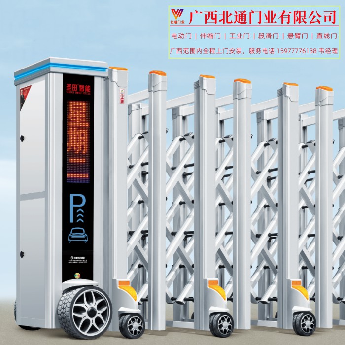 不锈钢电动伸缩门主体构造特性:不锈钢采用国际规范不锈钢原资料,经过特殊工艺制管停止折弯焊接定型制成门体。门体永不变型巩固耐用。门体用大小连杆衔接而成伸缩门,大连杆衔接型式为古币梅花式,小连杆衔接成菱型式道闸,美观大方,巩固耐用。不锈钢伸缩门活动部位特性:伸缩门每个活动部位环节均采用不锈钢管,轴,轴瓦,不锈钢螺母,尼龙衬垫组装,组装时每个环节点加注高级光滑油,无噪音伸自缩自若,铝合金电动伸缩门主体构造与不锈钢类似,也是应用平行四边形的运动原理,采用规范的铝合金型材直接用模具压制成型,然后经过镀锌管以及穿插连杆衔接而成。与传统的不锈钢电动门相比,材质更优,外型更美观,愈加耐腐蚀