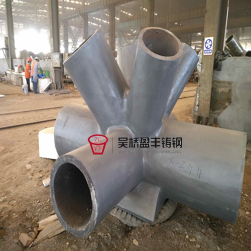 节点产品结构比较复杂,要求严格,是因为它的重要。对于如此重要的产品要了解每一个细节,对元素的含量及作用要了解,对它的性能要了解,对它的使用及环境要了解,总之,对所有应了解的东西都了解后,才能设计合理的铸造工艺,和合理的浇注系统。每个产品都可以设计出多种工艺方案,每一种方案都能生产出合格铸件,但哪种方案成品率高,节约工时材料,降低成本,提高效率,区别可能是很大的,所以我们要分析产品,从产品的每一个细节着手,包括材料,外形,精度要求等等,根据各厂条件制定出一套完整、可行、好的工艺。综上所述采用T作为节点材料,经过适当的热处理完全能够达到节点的机械性能要求,通过合理的铸造工艺也能生产出高品质的结构复杂节点铸件。