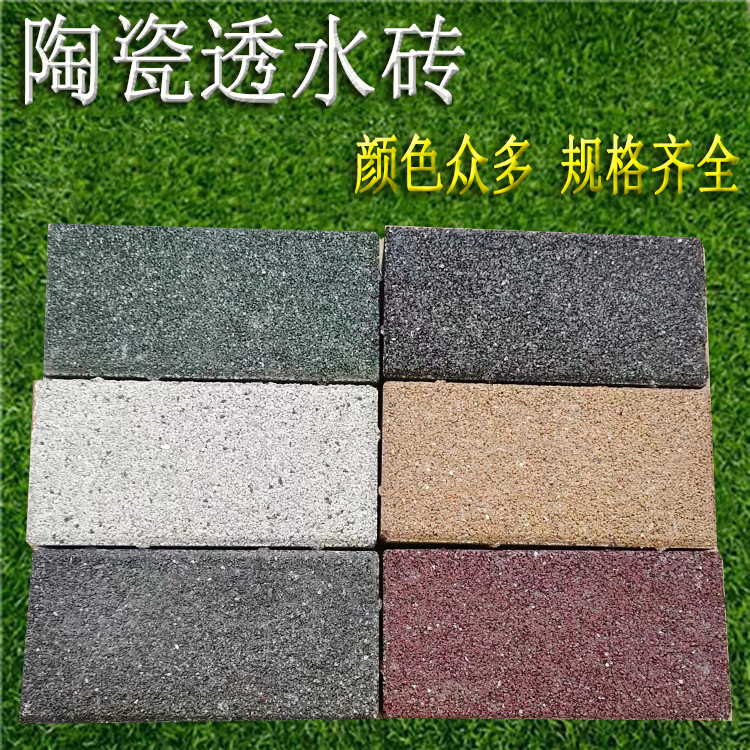 陶瓷透水砖的颜色是非常丰富的,可以根据不同的客户需要进行订做,铺设在道路面可丰富城市路面的色彩、美化城市、增强城市居民视觉感,避免了传统路面红色砖的单调乏味,陶瓷透水砖的常规颜色有白色、芝麻白(白色带黑点)、粉红、米黄颜色、浅黄颜色、深黄颜色、浅红色、中红色、深红色、浅灰色、中灰色、深灰色、绿色、蓝色、咖啡色。