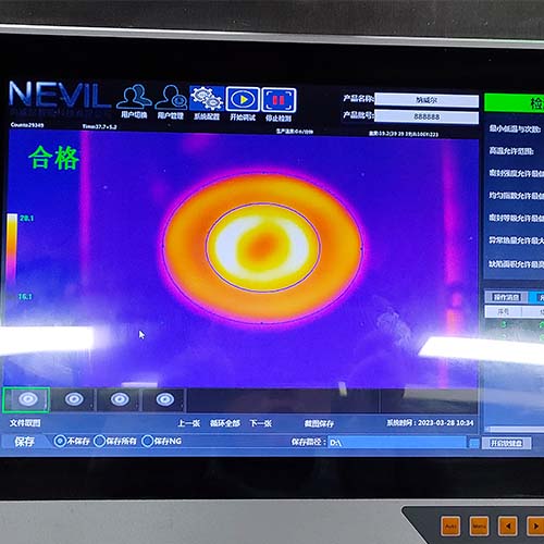 密封性封口质量检测系统是一款专门针对电磁感应密封封口机的配套检测设备。主要是利用红外热成像相机捕捉瓶盖表面的热量分布,得到热成像图片后,通过相应的图像分析,检测出不同的密封封口缺陷。