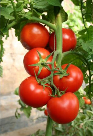4.口感西红柿苗品种:普罗旺斯水果西红柿苗,具有大红血统的粉果西红柿品种。无限生长型,植株长势旺盛,不早衰、产量高、萼片厚、果型美观、颜色好、中大果型,平均单果重200—300克。适宜冬暖温室早春、秋延、越冬一大茬或拱棚早春、越夏栽培。